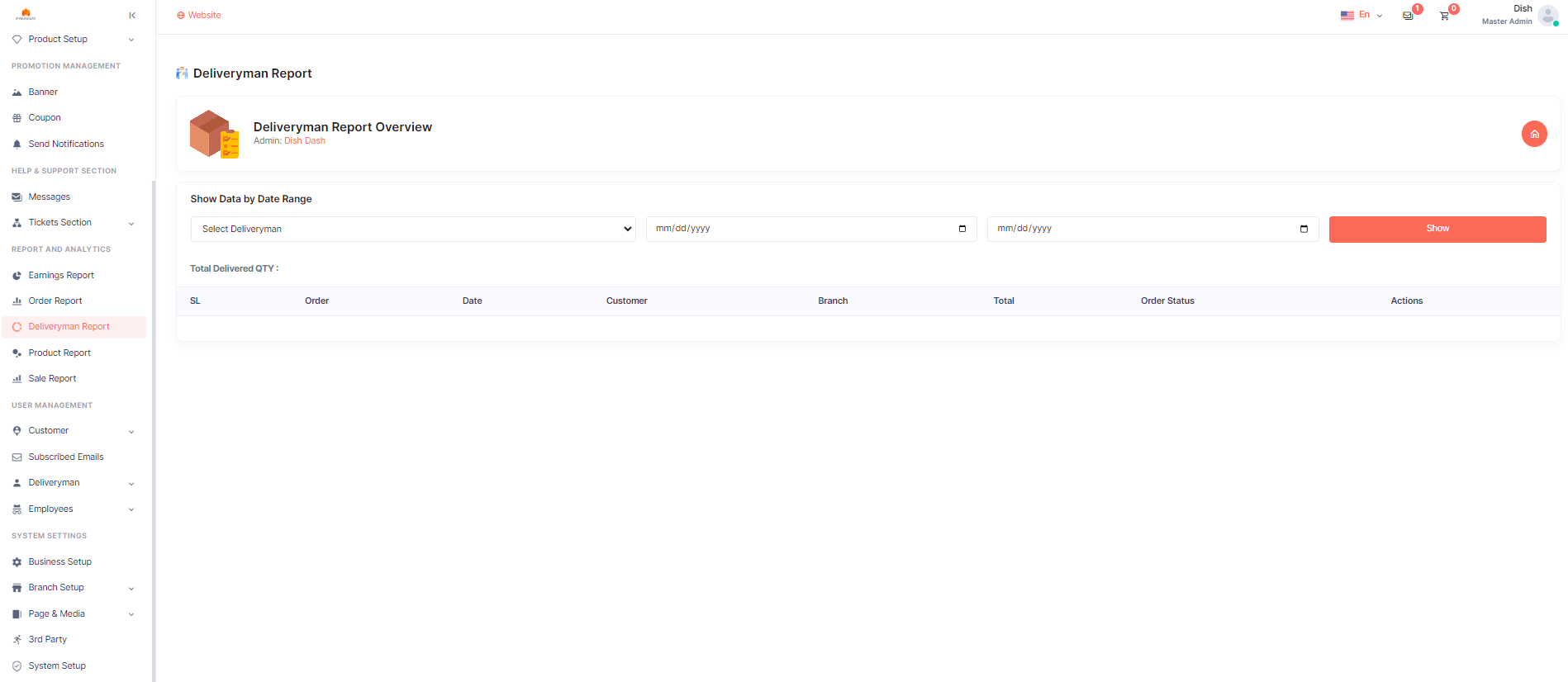 The Deliveryman Report menu provides key insights on delivered orders, Delivery Men, Branch details, Invoices, and delivery dates. It allows supervisors to search for orders within a specific time period or filter orders by employee. This aids in evaluating driver performance and monitoring deliveries efficiently.